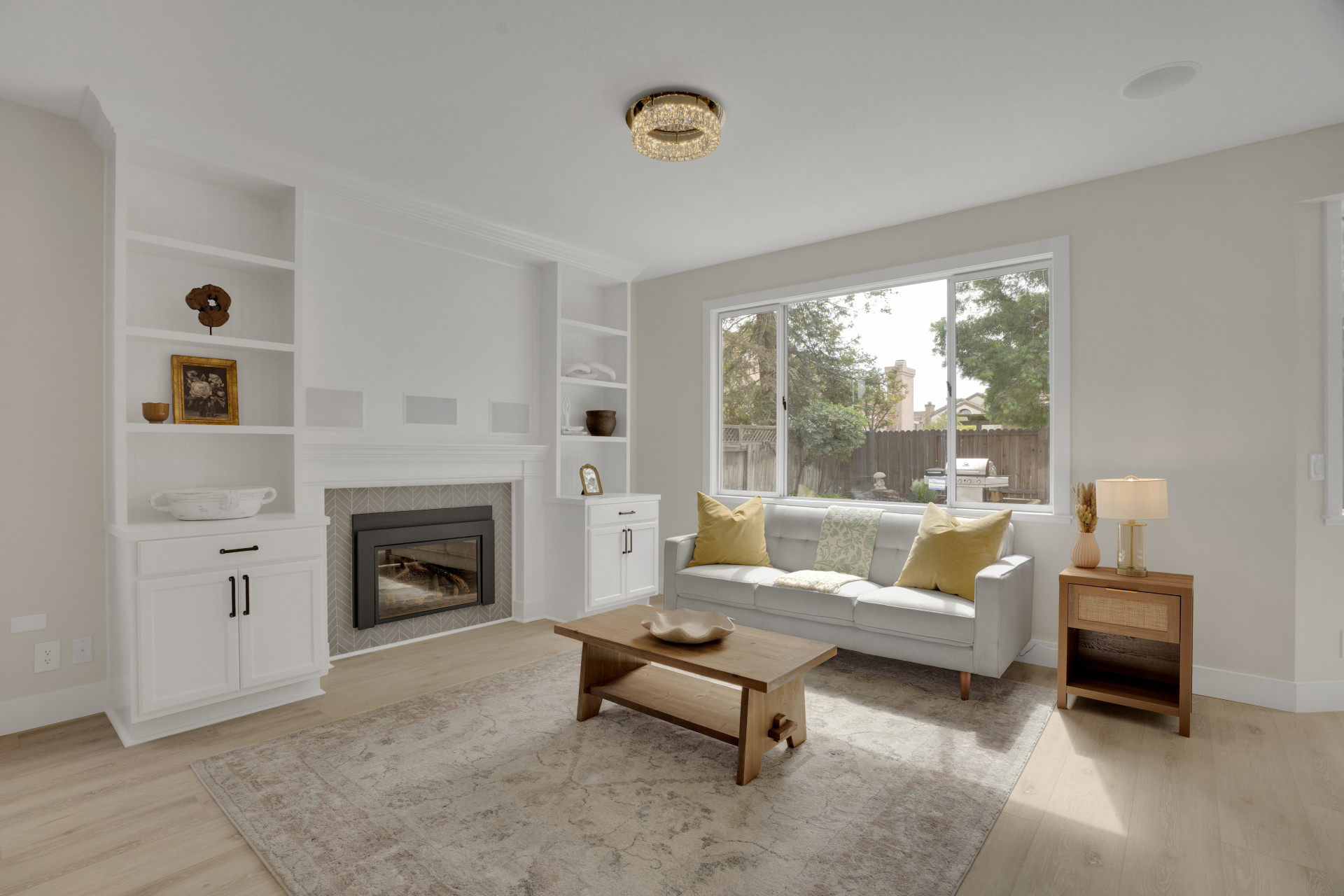 Entertaining is effortless with two spacious living rooms, one with beautiful water views of the delta, cozy gas fireplace, and a stylish built-in bar with a wine fridge. A standout feature is the custom entertainment center, fully equipped with built-in 5.